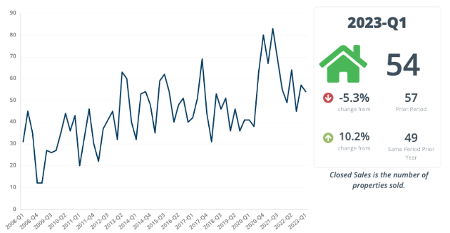 There were 54 condo/co-op residential closings reported during this time period; which was an increase from Q1 2022 when there were 49 closings.