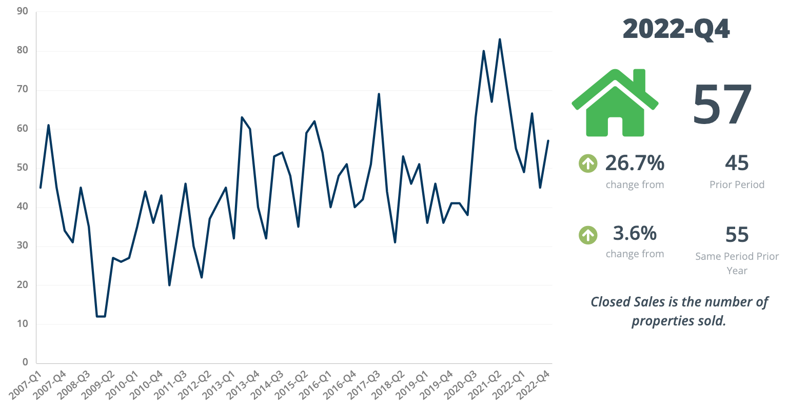 There were 57 condo/co-op residential closings reported during this time period; which was a decrease from Q4 2021 when there were 55 closings.