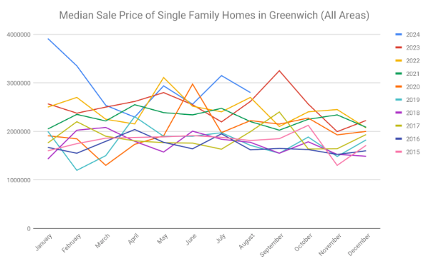 September 5, 2024 (Greenwich, CT) - The Greenwich Association of REALTORS® announces the statistics for home sales for the month of August 2024 according to figures provided by the Greenwich Multiple Listing Service, Inc. The Greenwich MLS and greenwich.realestate is the most accurate and comprehensive resource of active inventory and property listing data across all five zip codes of the Town of Greenwich.