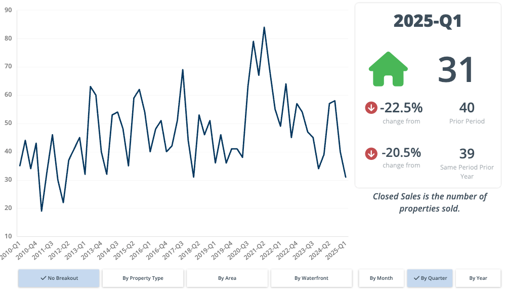 There were 31 condo/co-op residential closings reported during this time period; which was a decrease from Q1 2024 when there were 39 closings.
