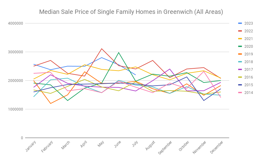 August 7, 2023 (Greenwich, CT) - The Greenwich Association of REALTORS® announces the statistics for home sales for the month of July 2023 according to figures provided by the Greenwich Multiple Listing Service, Inc. The Greenwich MLS and greenwich.realestate is the most accurate and comprehensive resource of active inventory and property listing data across all five zip codes of the Town of Greenwich.