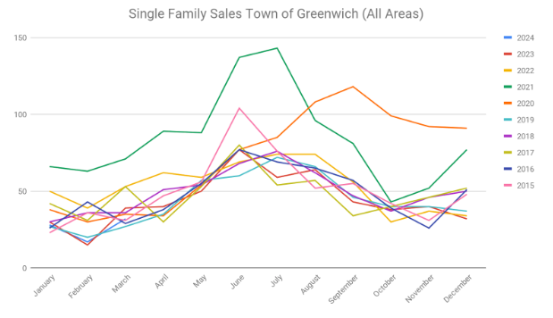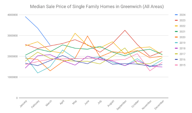 April 5, 2024 (Greenwich, CT) - The Greenwich Association of REALTORS® announces the statistics for home sales for the month of March 2024 according to figures provided by the Greenwich Multiple Listing Service, Inc. The Greenwich MLS and greenwich.realestate is the most accurate and comprehensive resource of active inventory and property listing data across all five zip codes of the Town of Greenwich.